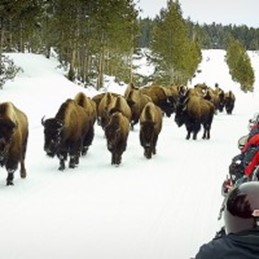 In Yellowstone National Park there is so much to see and do, but the famous Old Faithful geyser is a must. In the winter you can take The Old Faithful Snowmobile Tour — 45 miles each way an exhilarating ride and popular points of interests along the way — for viewing the beautiful landscape, scenery, and wildlife. If this is too much exhilaration to handle – there is a chauffeured snowcoach tour — the only warm way to see Yellowstone. The only way to see Yellowstone in the winter is by snowmobile, snowcoach, cross country skiing or snowshoeing.